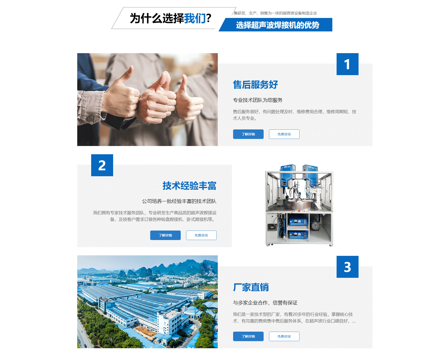 關于我們廈門勁榮機械設備有限公司是一家集研發(fā)、生產(chǎn)、銷售為一體的超音波設備制造企業(yè),主要產(chǎn)品包括多規(guī)格型號的超音波塑膠熔接機、熱板式塑料焊接機、多工位轉盤焊接機、振動摩擦焊接機、旋轉式塑膠熔接機及配套的工裝夾具等。公司自2003年成立以來,一直致力于產(chǎn)品不斷完善中,并追求產(chǎn)品的精益求精,于2004年向國家商標局注冊了“勁榮”牌商標,2009年榮獲廈門市商標。 經(jīng)過多年的努力,公司已經(jīng)發(fā)展成為占地面積2000余平方米、擁有員工50余人的企業(yè)。公司一直將“品質是企業(yè)發(fā)展的原動力”作為經(jīng)營理念,嚴把質量關,建立了一整套有效的安全生產(chǎn)及管理模式,不僅贏得了同行的認可,更取得了客戶的信賴,先后與九牧集團、路達工業(yè)、建霖集團、西伯電子、蒙發(fā)利實業(yè)、松霖科技、銥科集團、科司特電子等公司建立了長期的合作關系。 面對已經(jīng)取得的成績,我們不驕不滿,因為深知業(yè)績只能代表過去,只有靠良好的產(chǎn)品質量和完善的售后服務才能在客戶中口碑相傳,在...